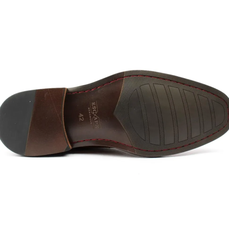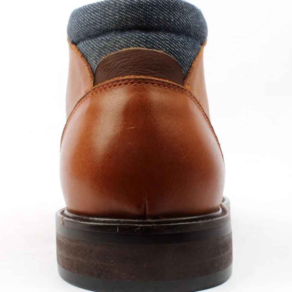 Dressy / casual mens boots from Escape Shoes. This boot has a smooth tan leather upper with toe cap and padded denim collar detailing. A padded memory foam insole adds to the comfort of this style.