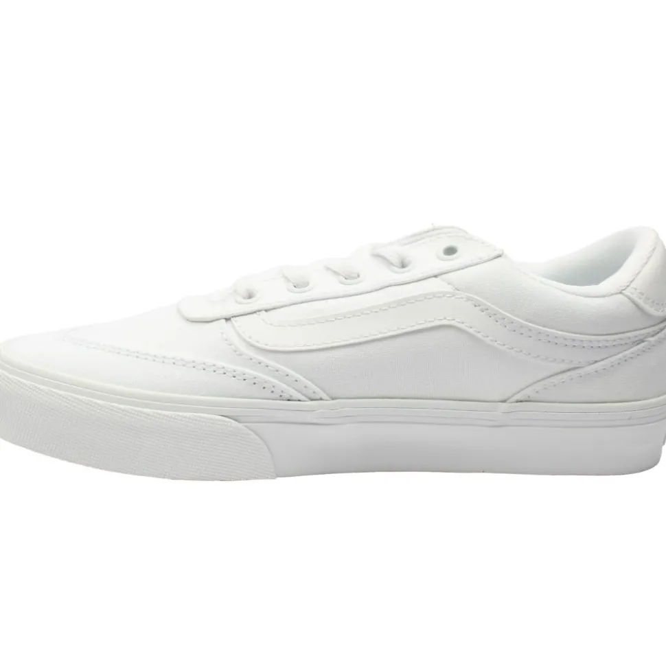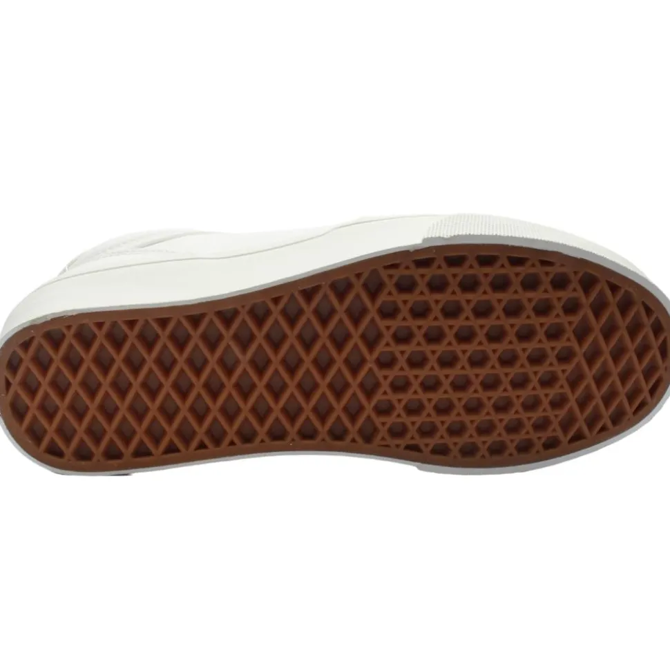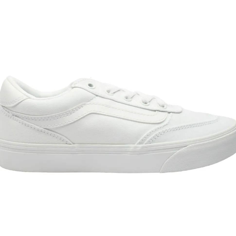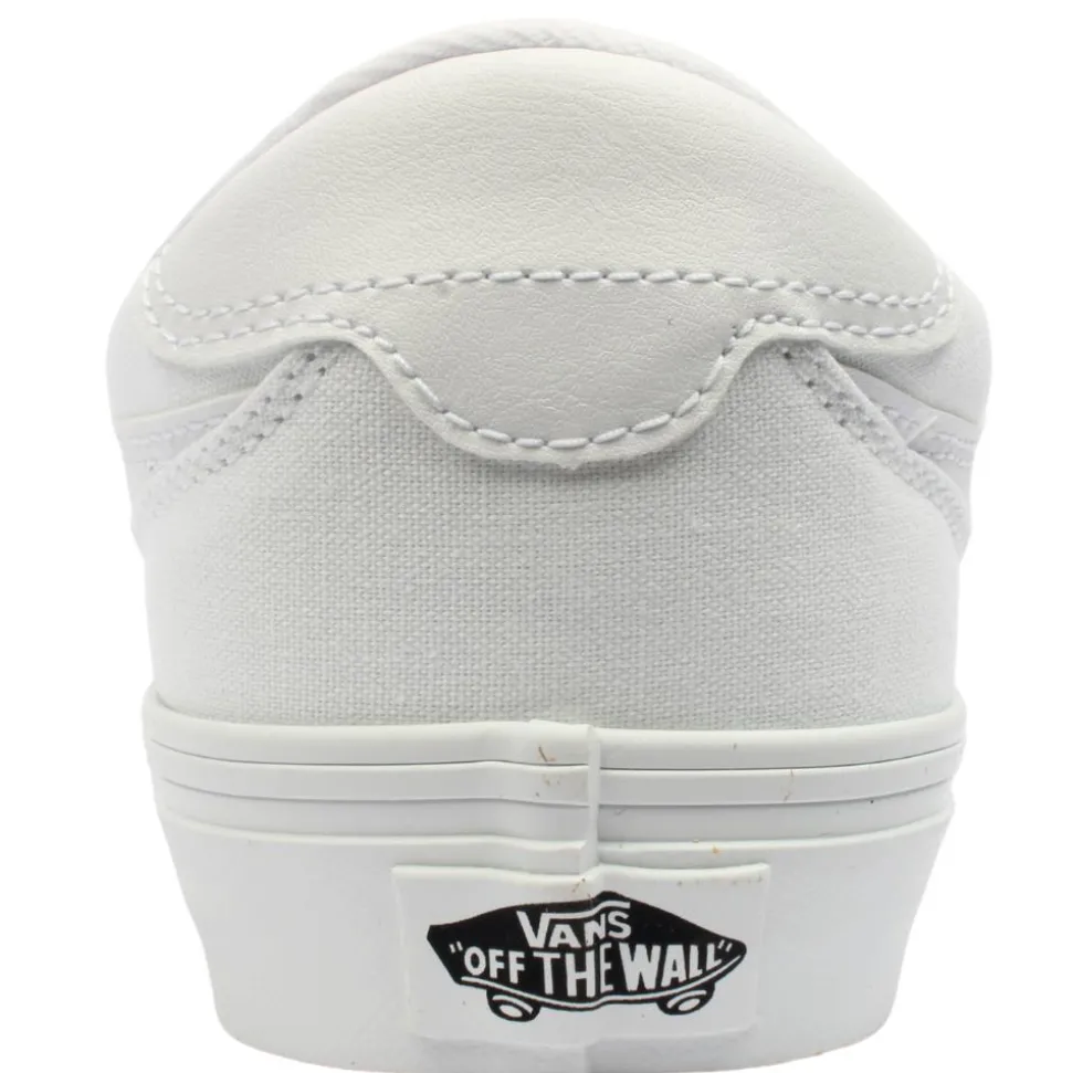 Ladies Vans shoes in n all white upper. These womens Vans shoes sit upon an original waffle outsole with Vans branding visible on the heel & tongue. With a neutral white upper you can pair these shoes with anything.